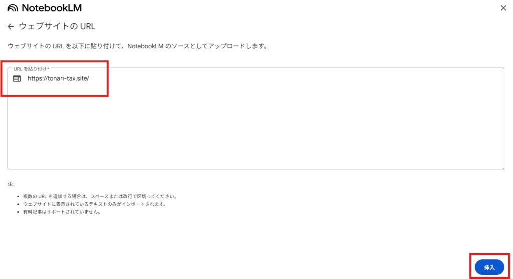 ステップ1:NotebookLMで新規ノートブックを作成し、URLを入力する